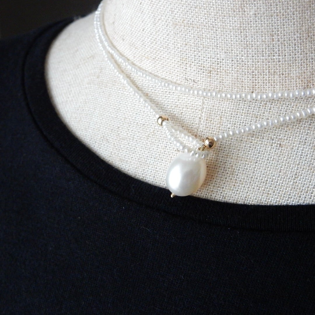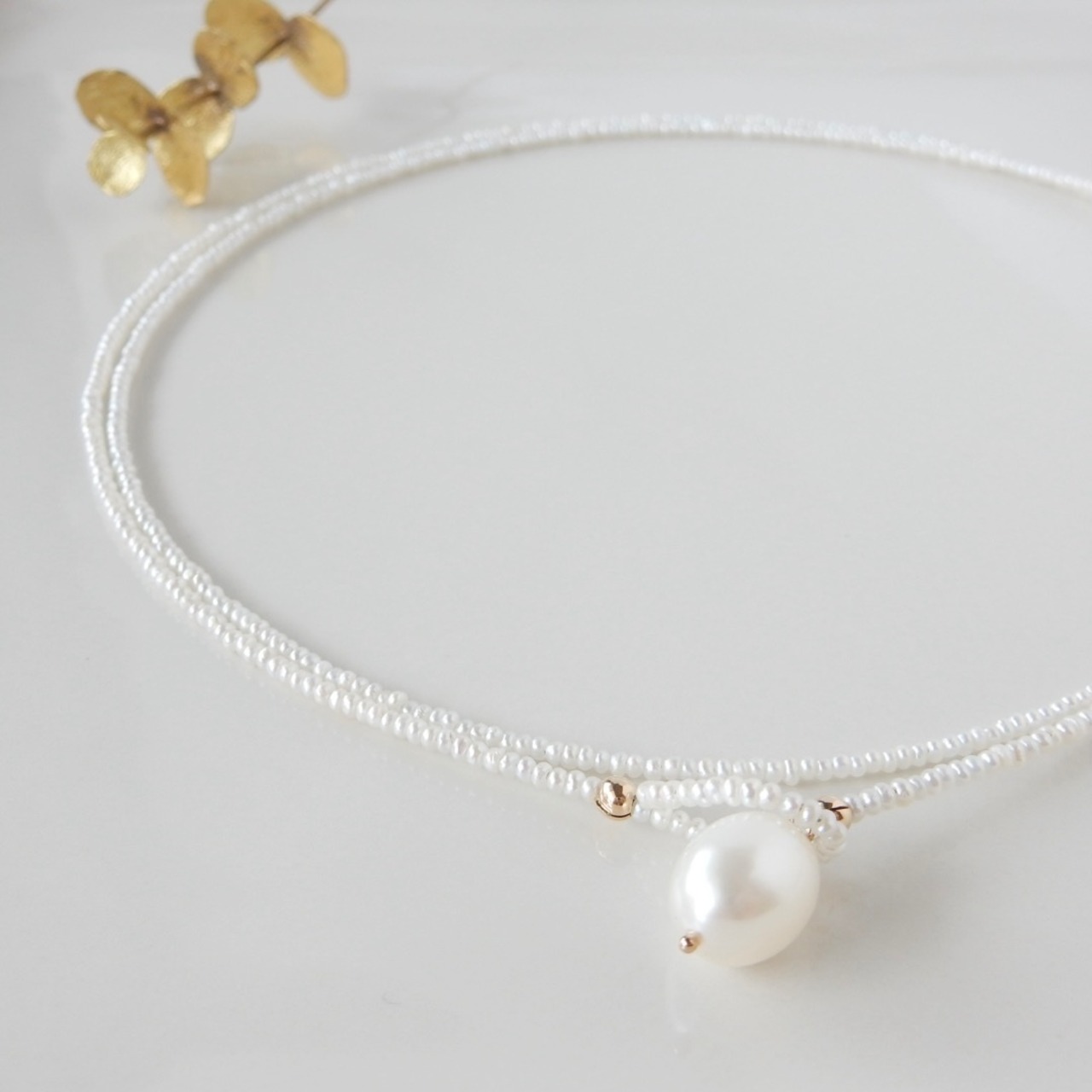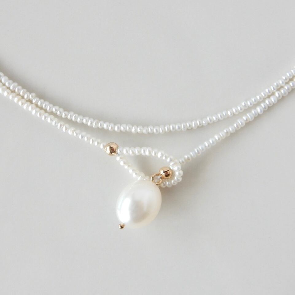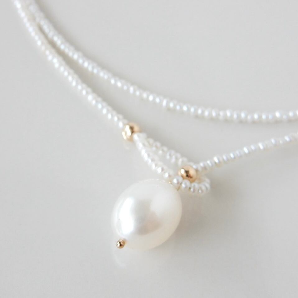 稀少で貴重な極小パールを贅沢に使用したロングネックレス。