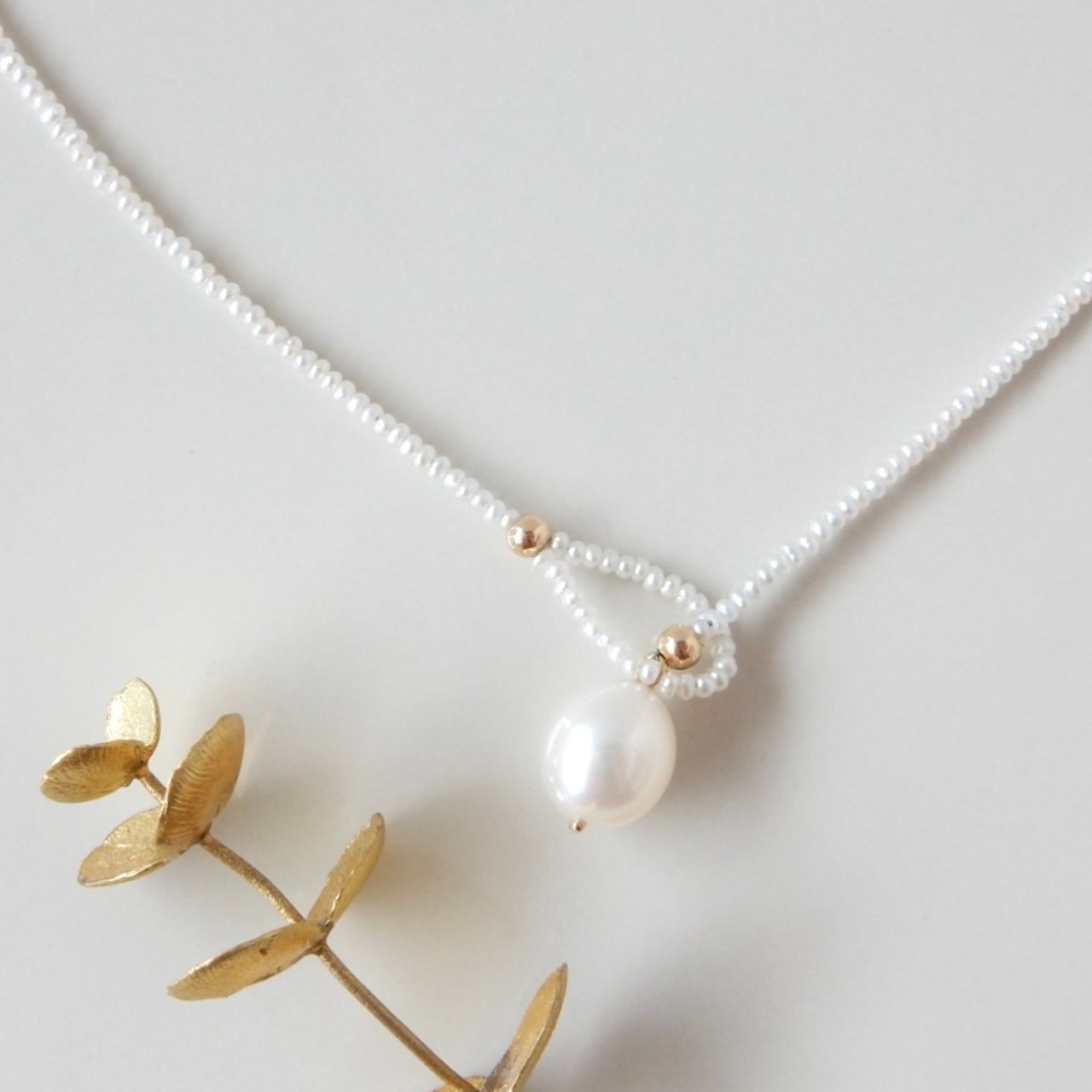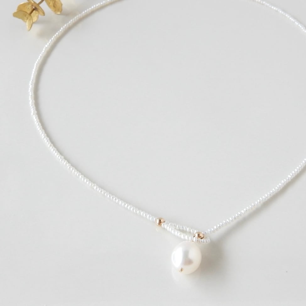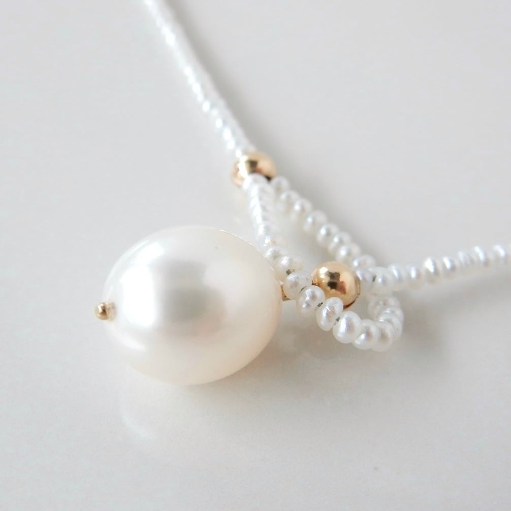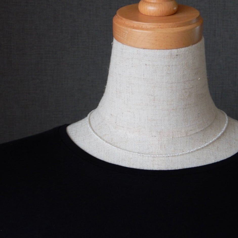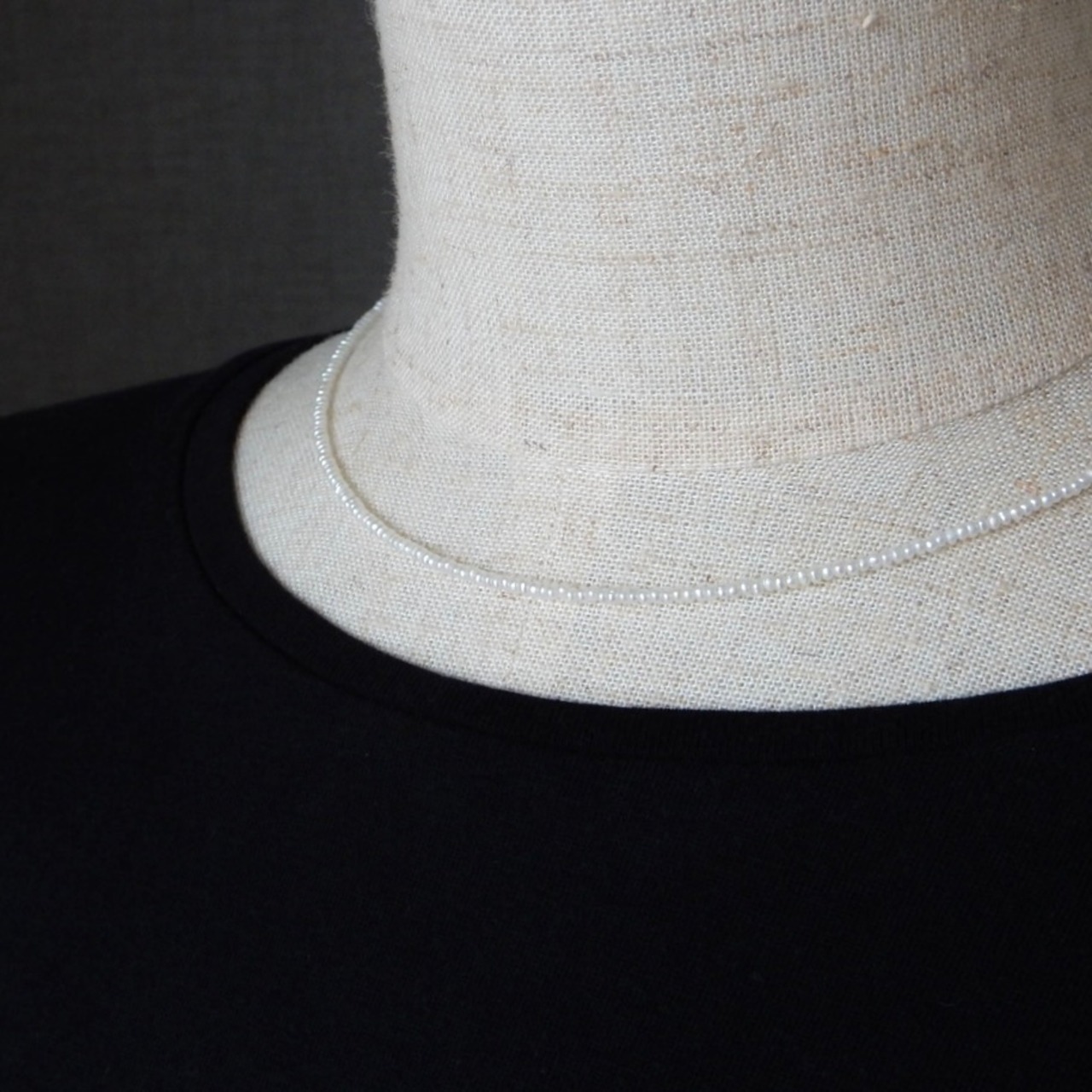 前後ろ逆に着けると、極小パールの一連ネックレスに。