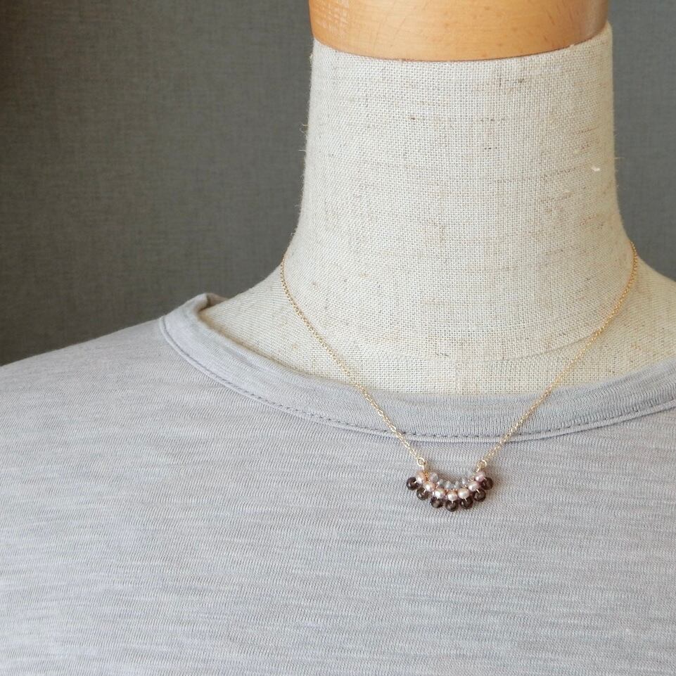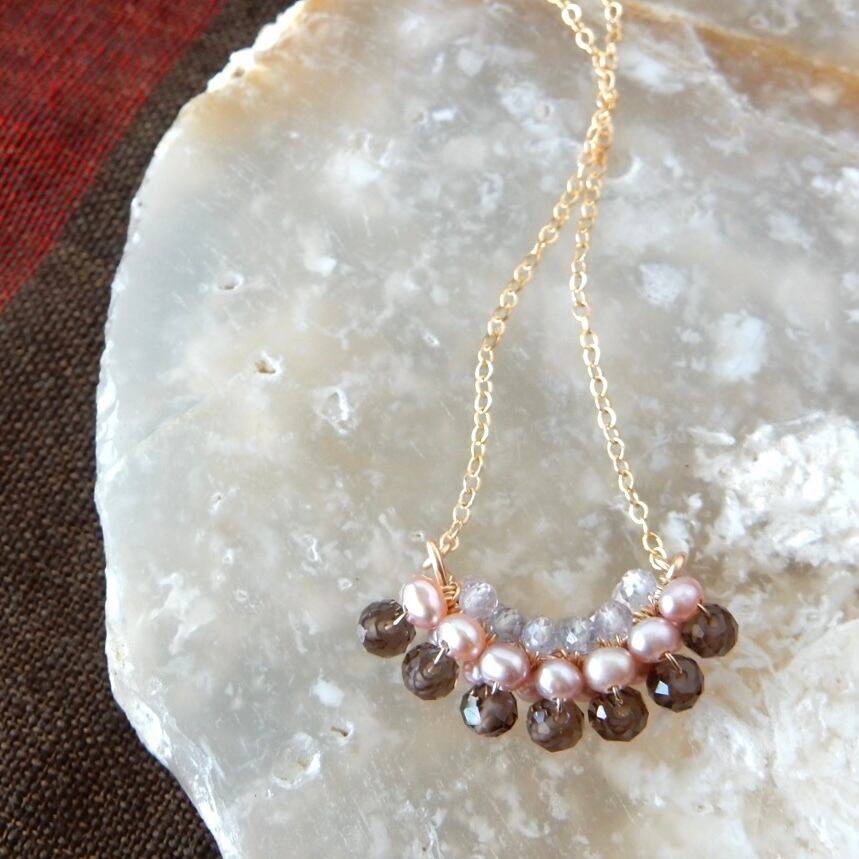 〖秋色ファン〗スモーキークォーツ・淡水パール(ピンク)・グレースピネルネックレス14kgf【1814】