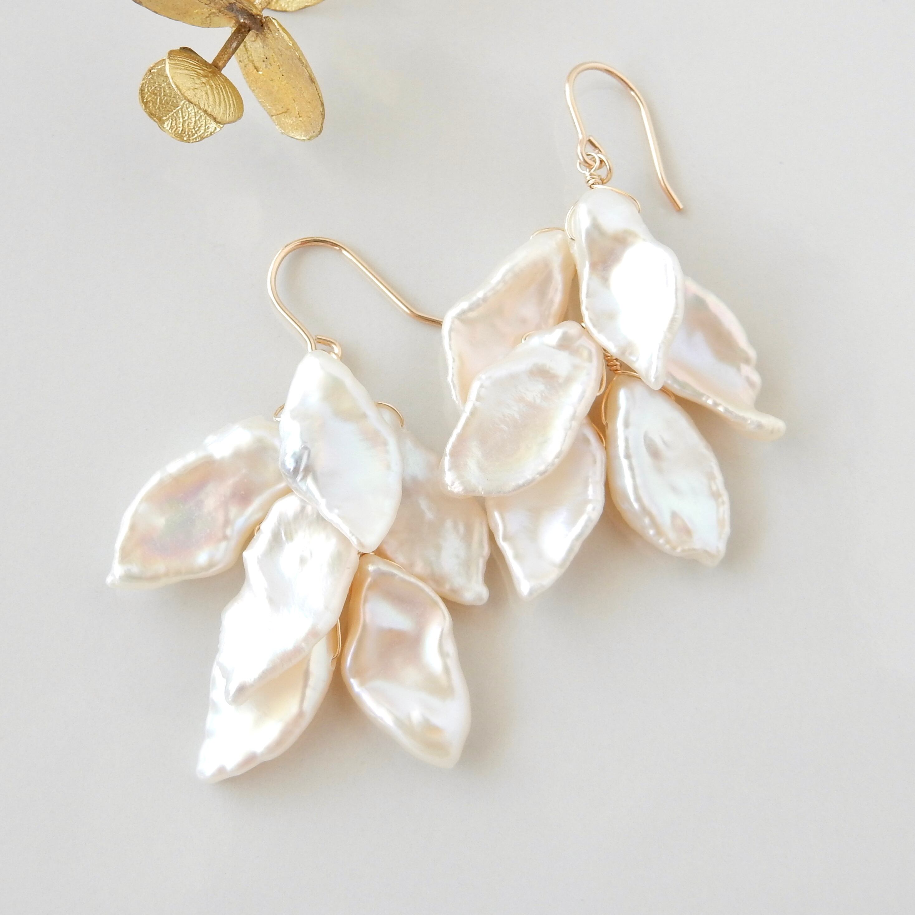 〖ガーベラ花びら〗淡水パールピアス/イヤリング14kgf 6pc【1817】