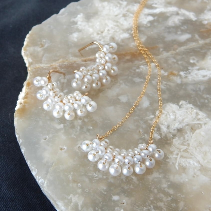 3種類の大きさの小粒パールを組み合わせ、隙間なく仕上げています。