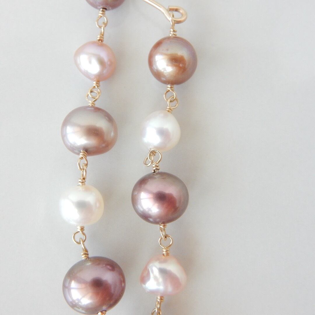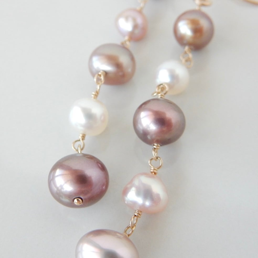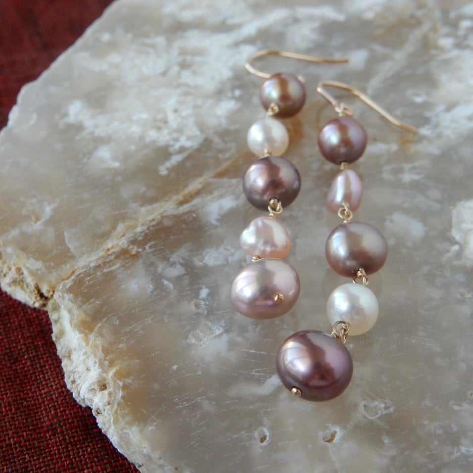 淡水パールロングピアス/イヤリング14kgf 5pc ブラウン系ミックスカラー【1829】