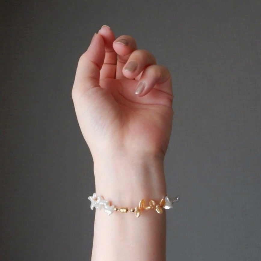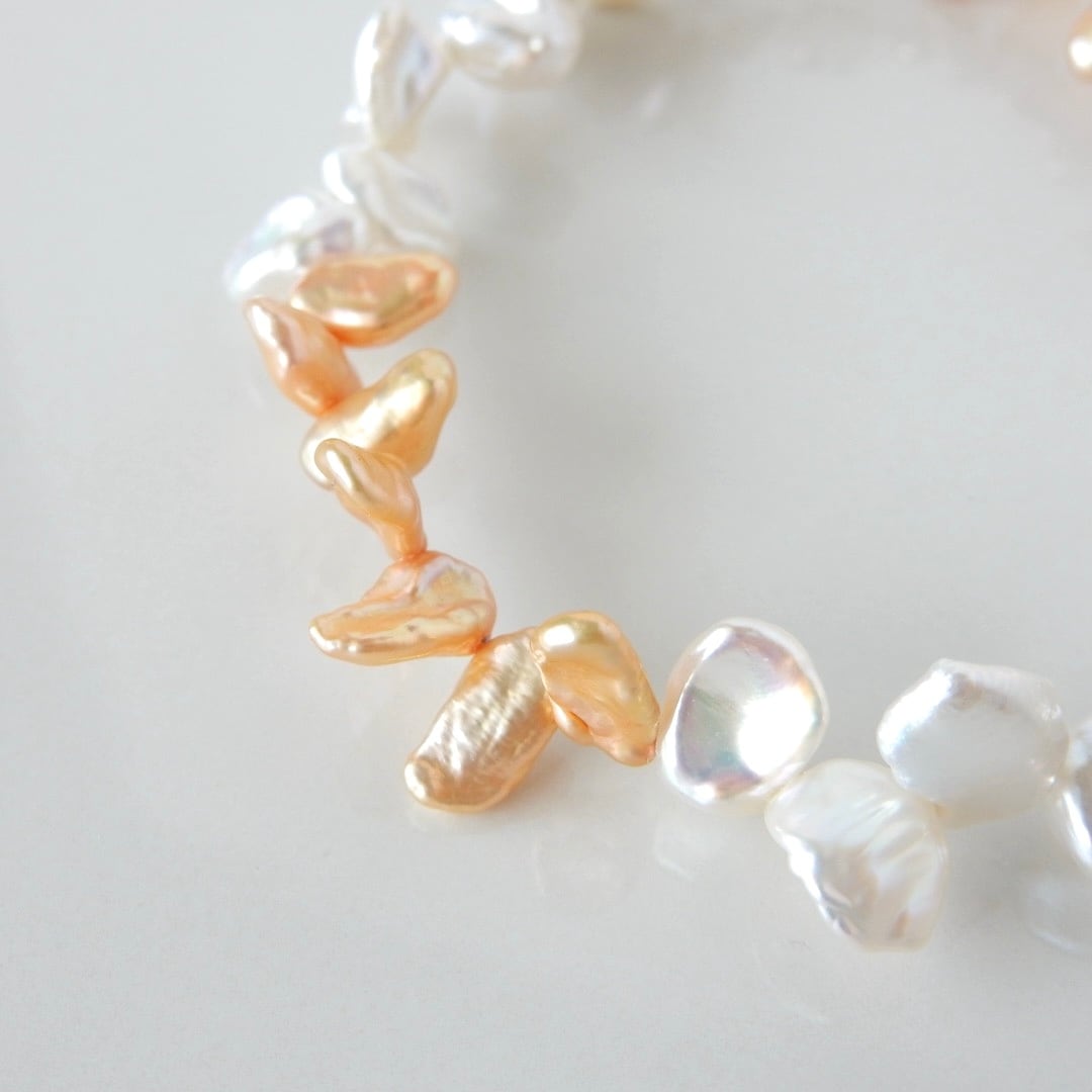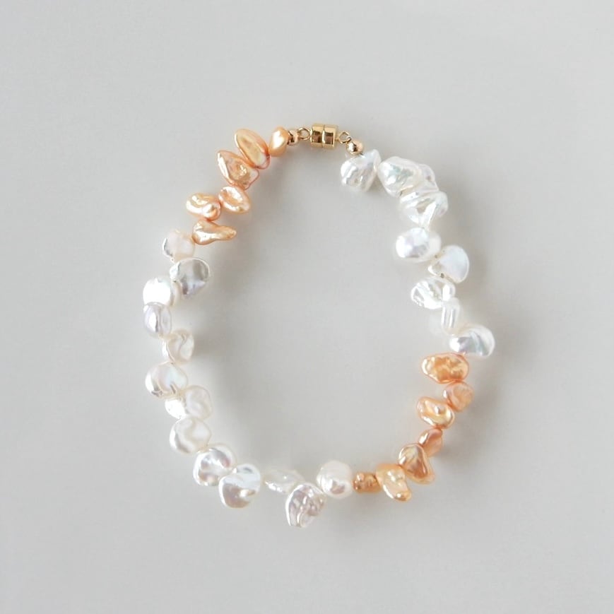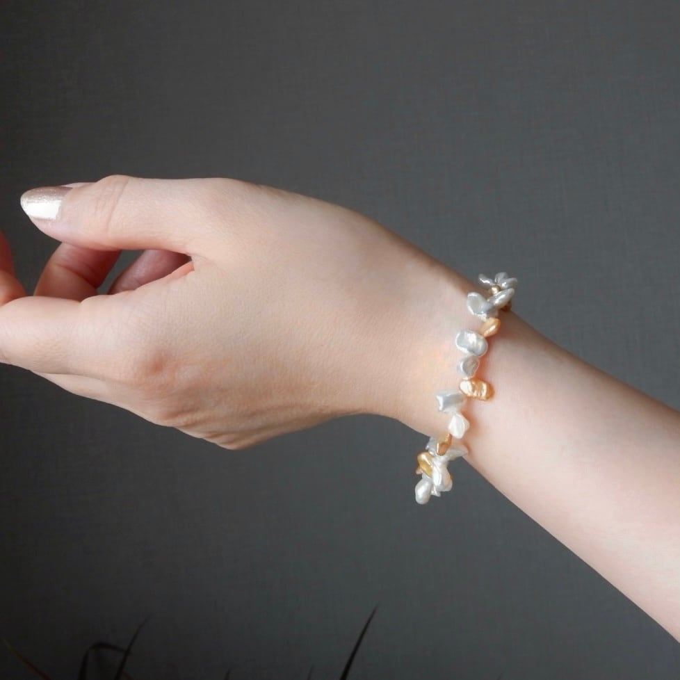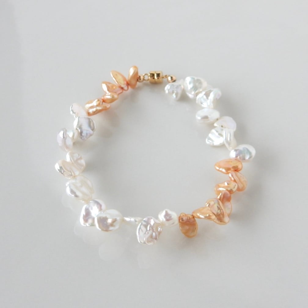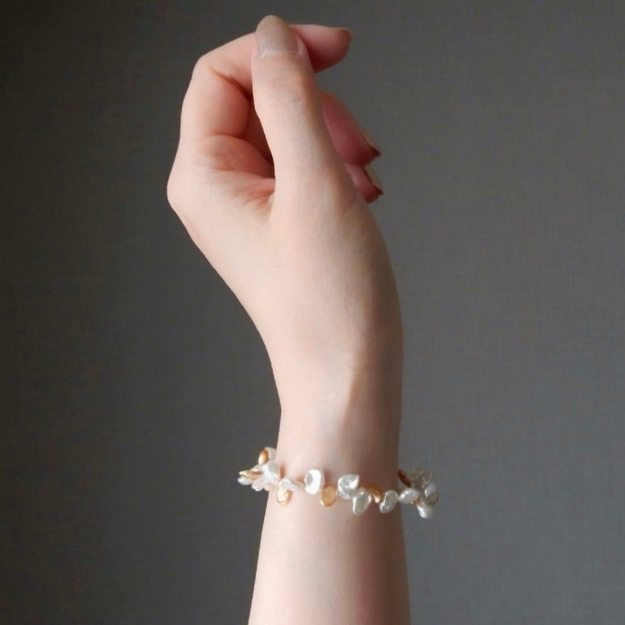 〖小さな花びら〗淡水パール(ホワイト・ゴールド)ブレスレット14kgf【1759】