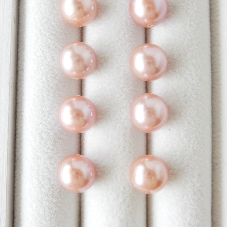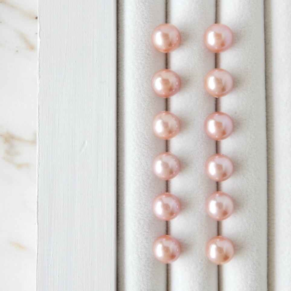 〖9mm/ピンク〗淡水パールピアス/イヤリング14kgf【1901】