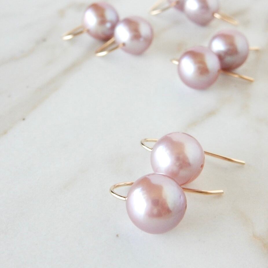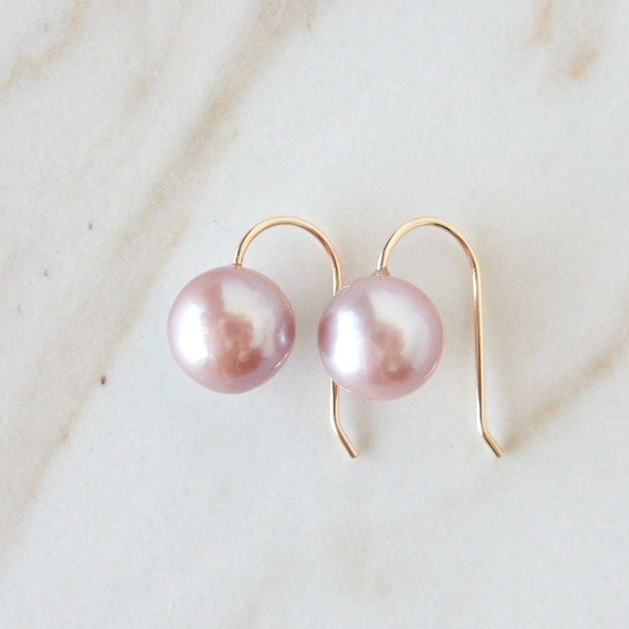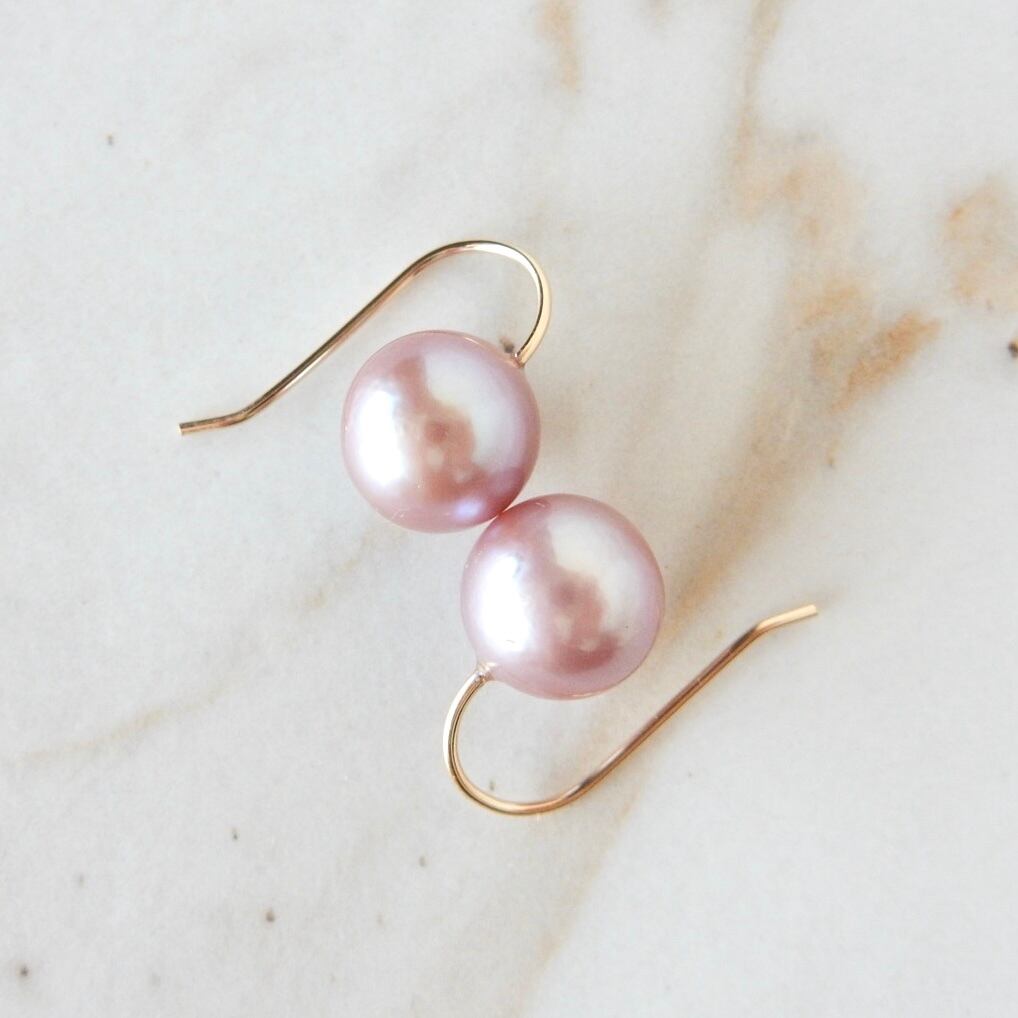 〖ラウンド9mm/パープルピンク〗淡水パールフックピアス14kgf【1902】