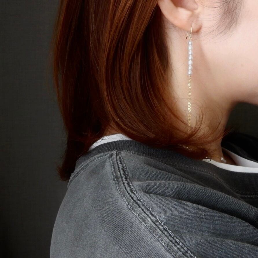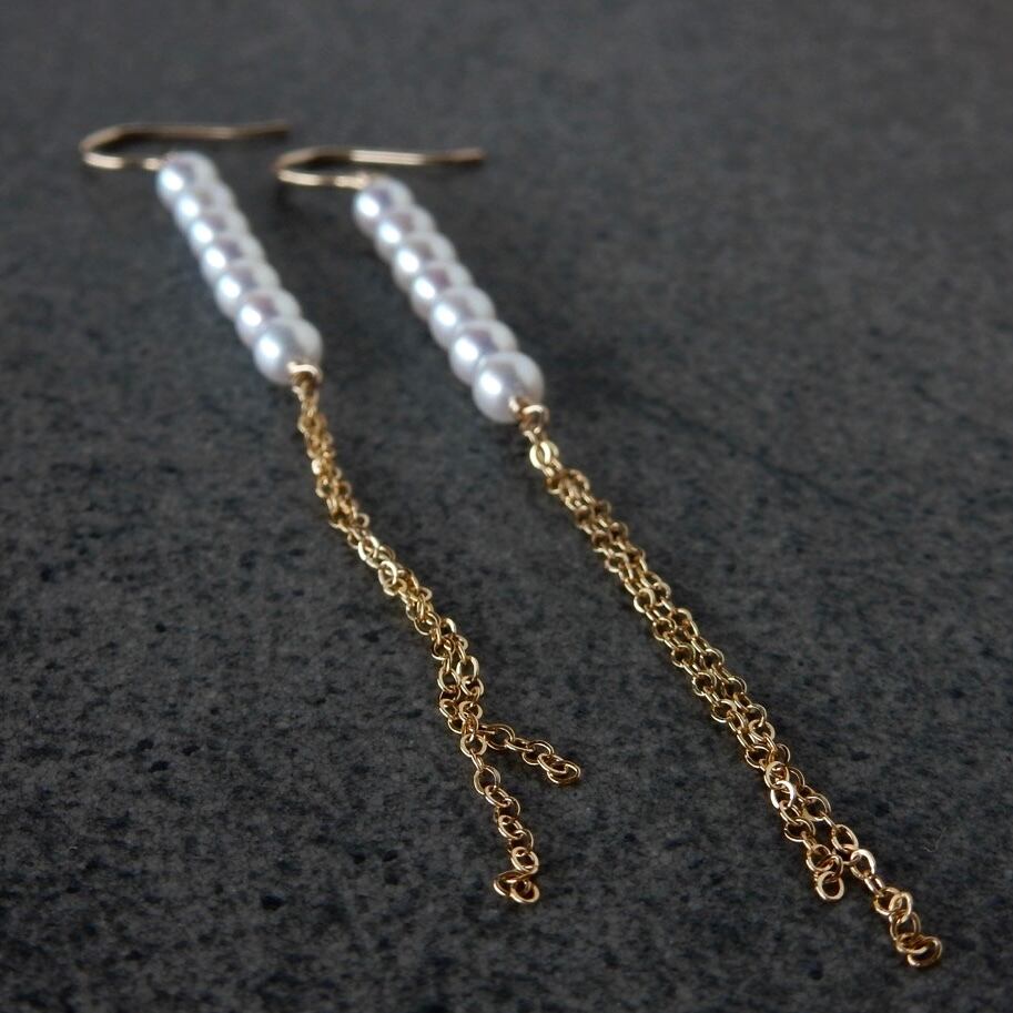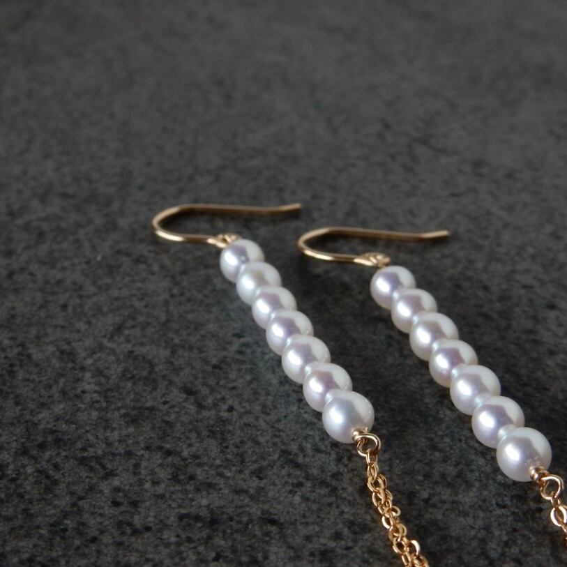 〖バー/チェーン〗淡水パールピアス/イヤリング14kgf【1915】