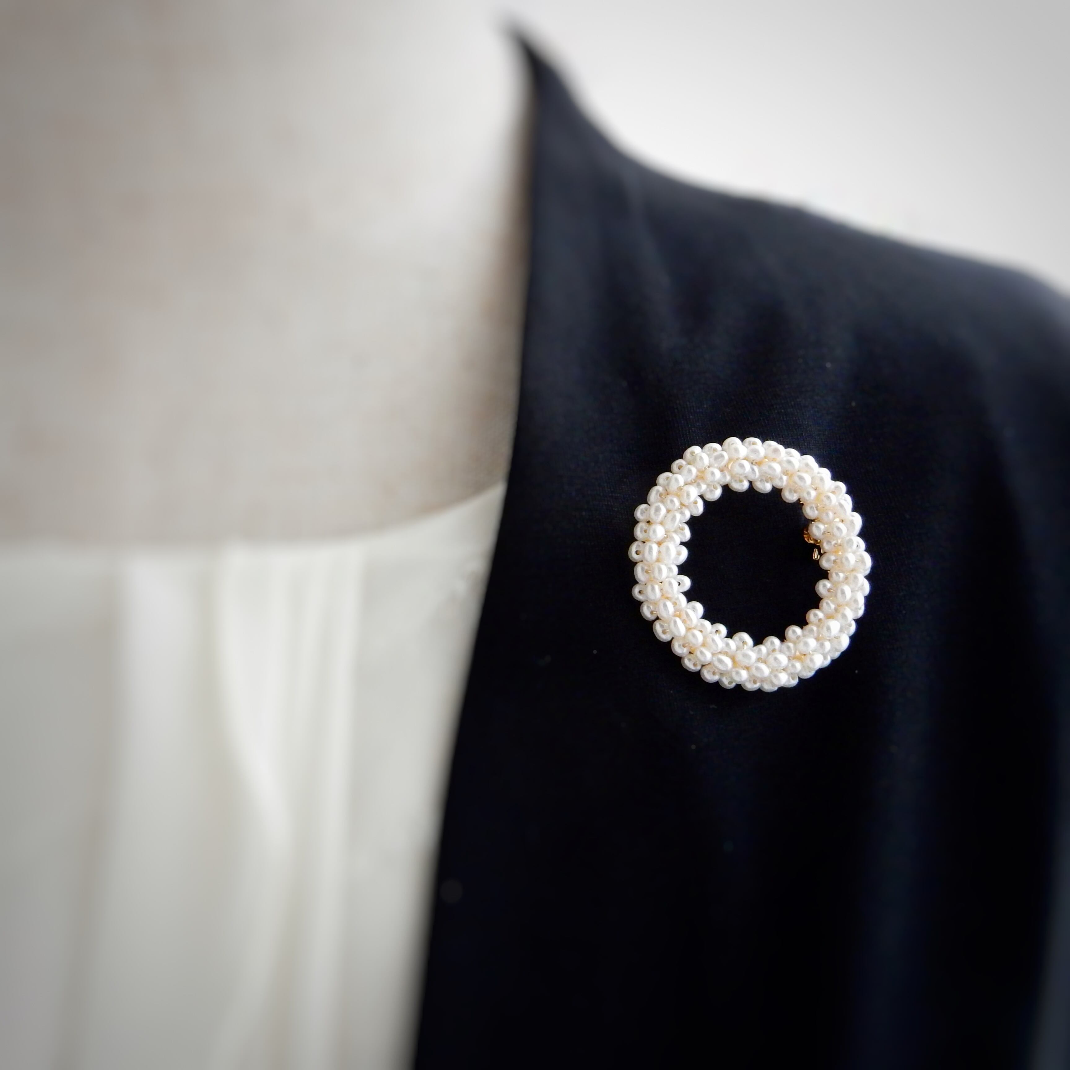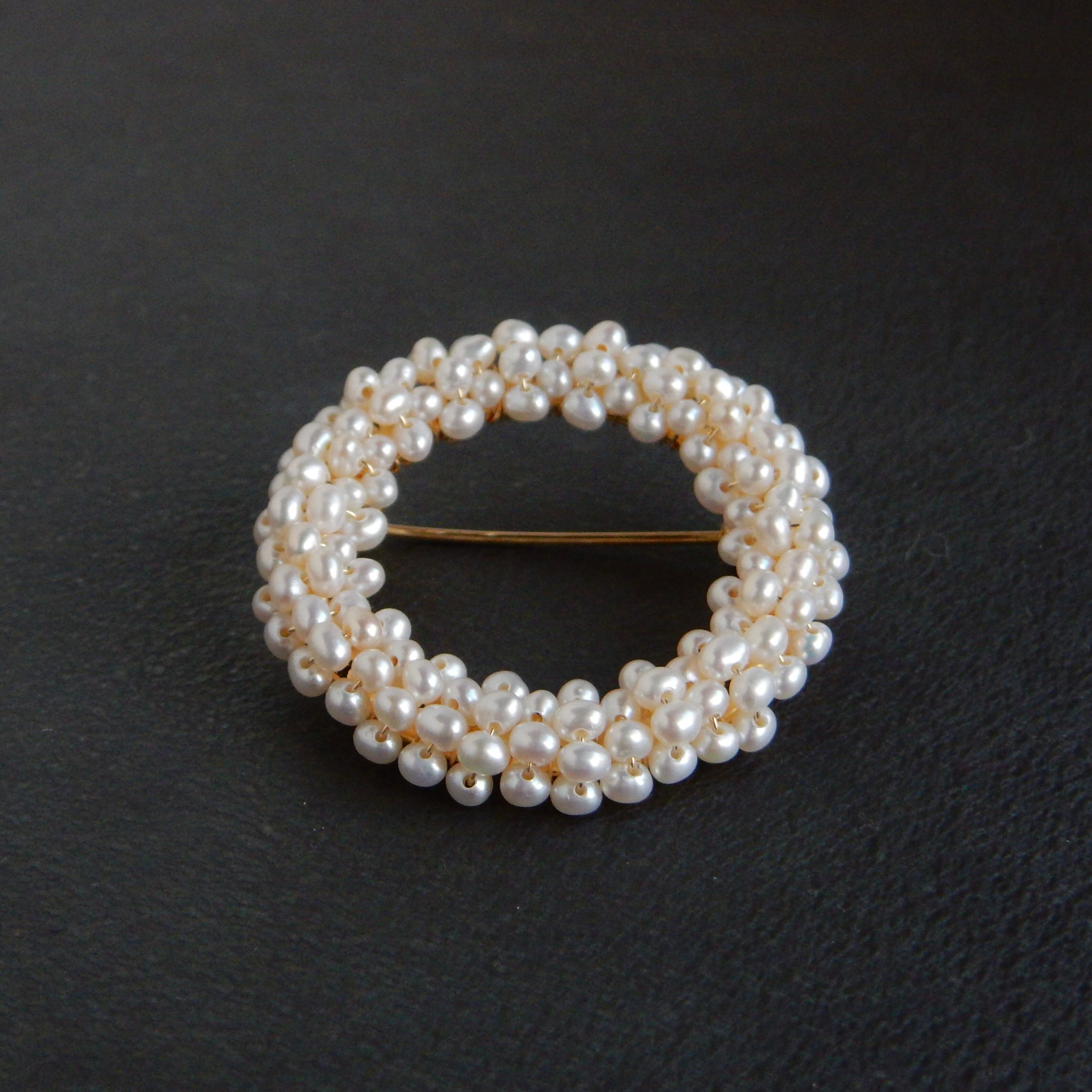 しっかりとした大きさで存在感がありますが、小粒パールが密集していてコンパクトにまとまった印象です。