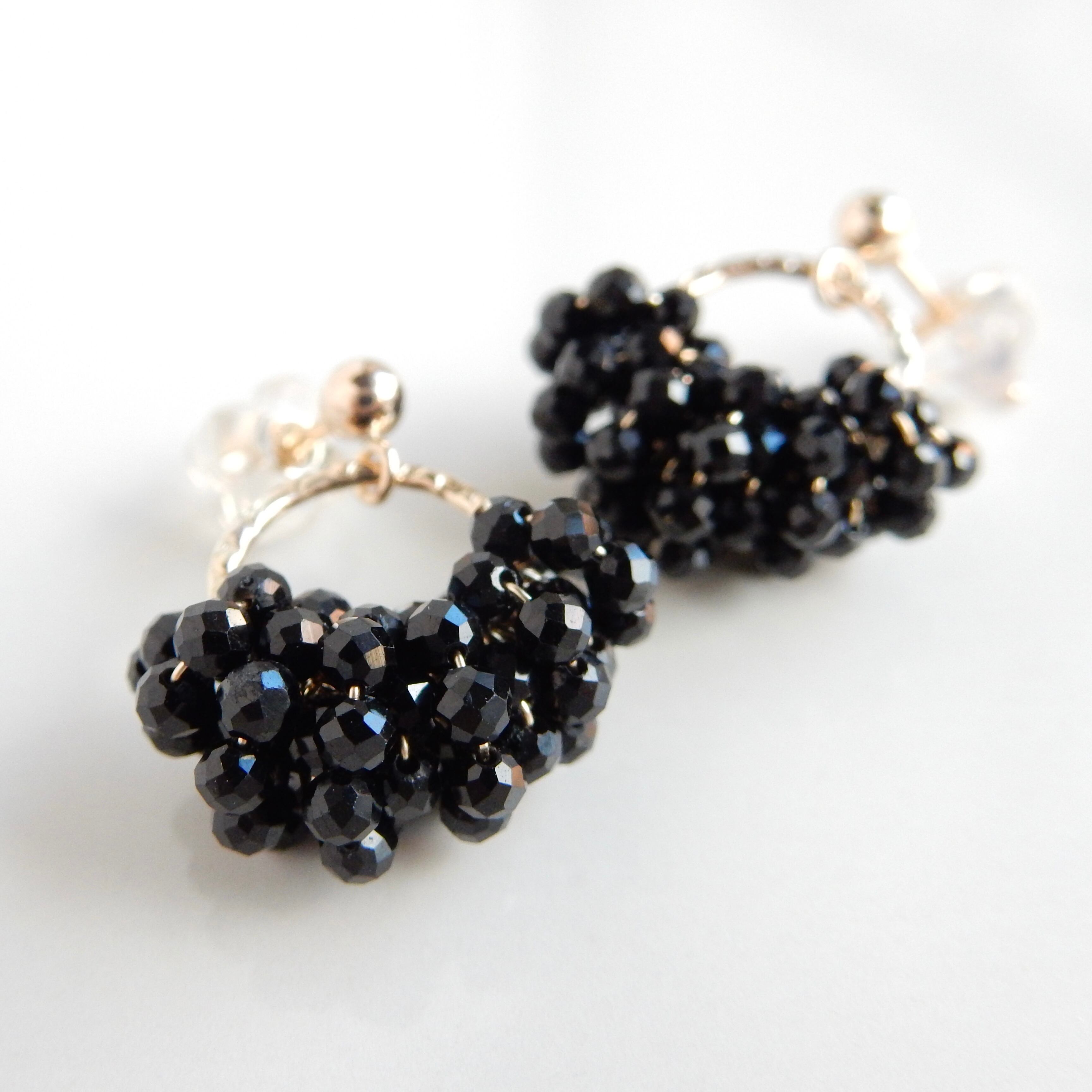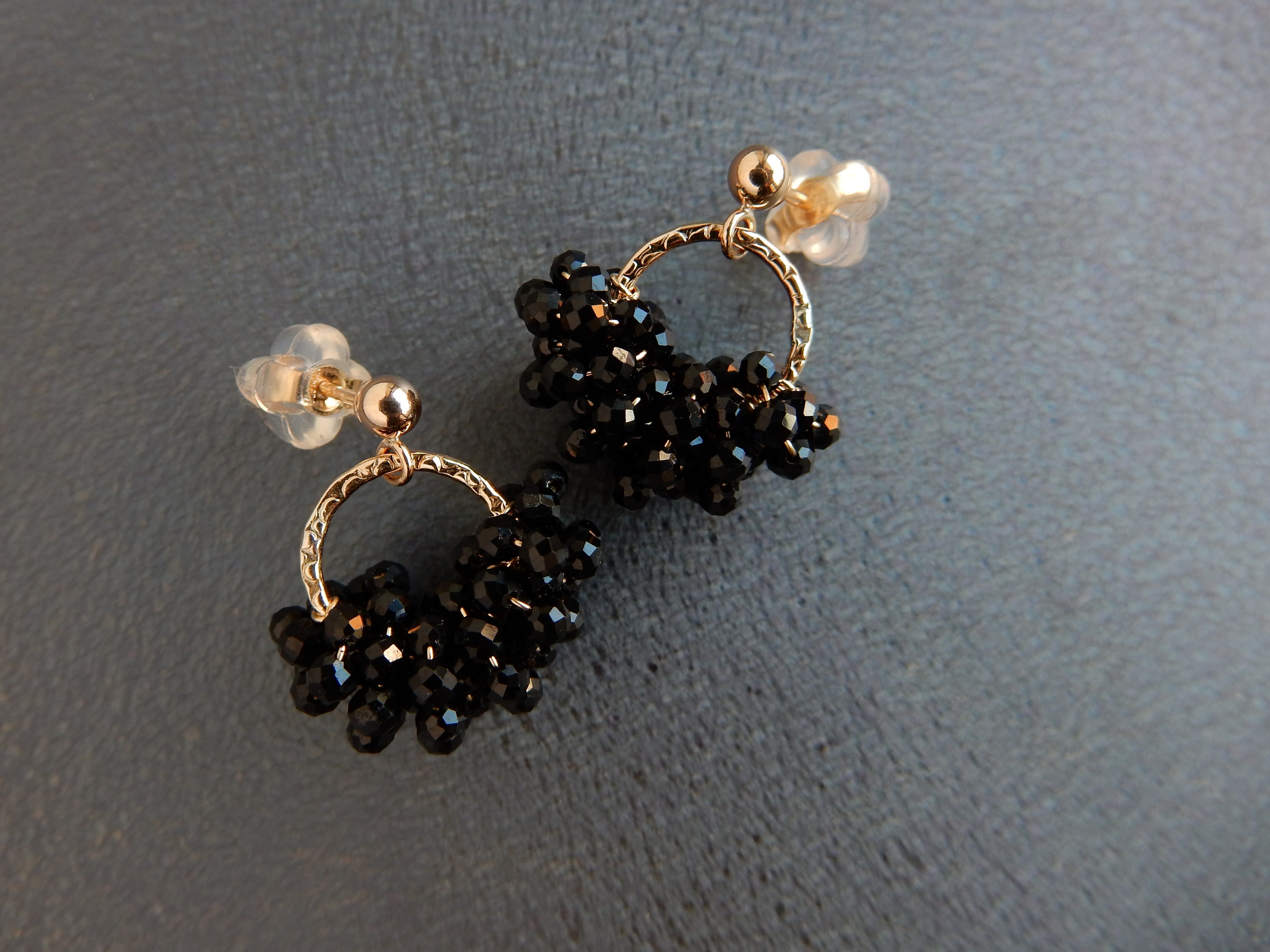 〖Sサイズ〗ブラックスピネルハーフリースピアス/イヤリング 14kgf【1017】