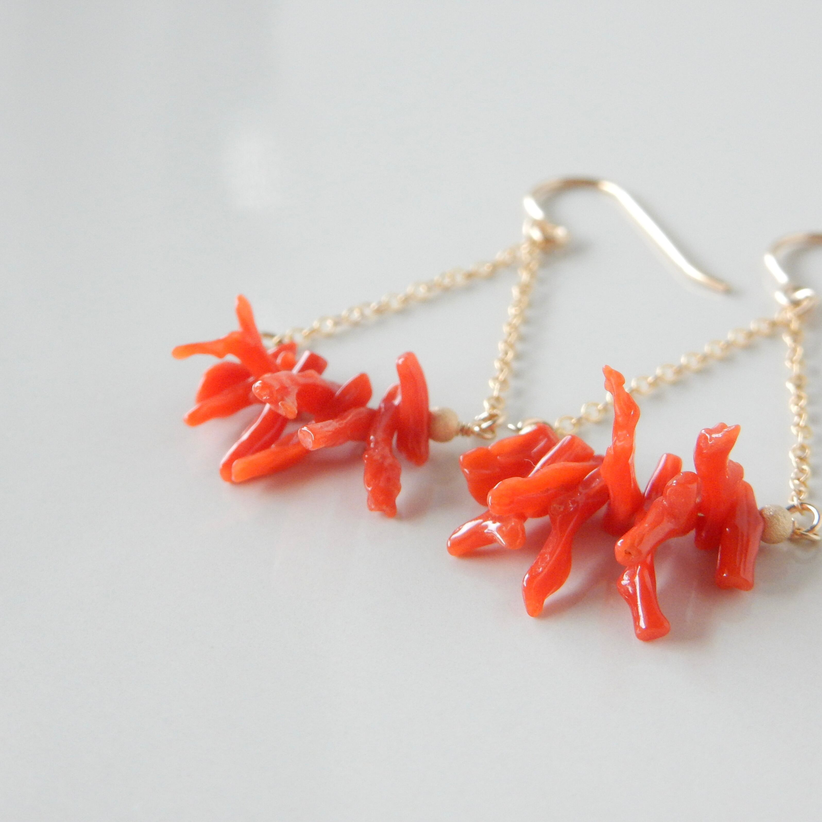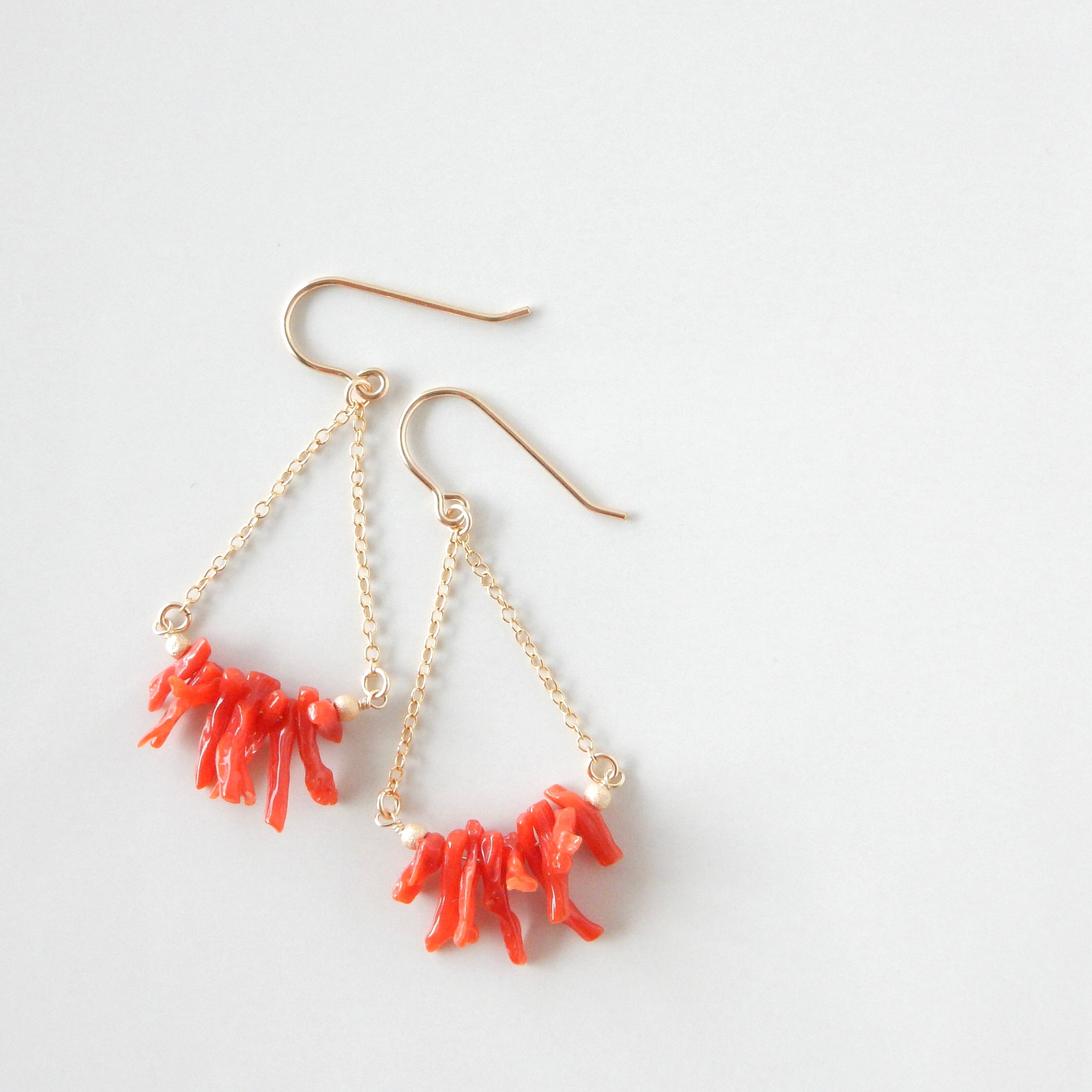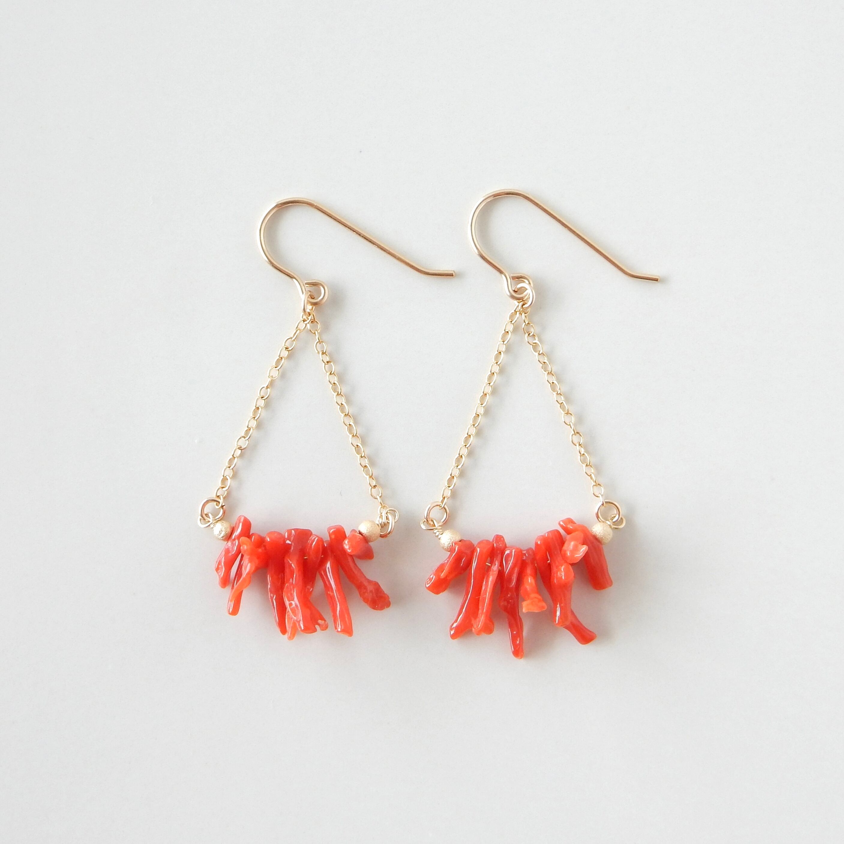 レッドコーラル(枝)ピアス/イヤリング 14kgf【1497】